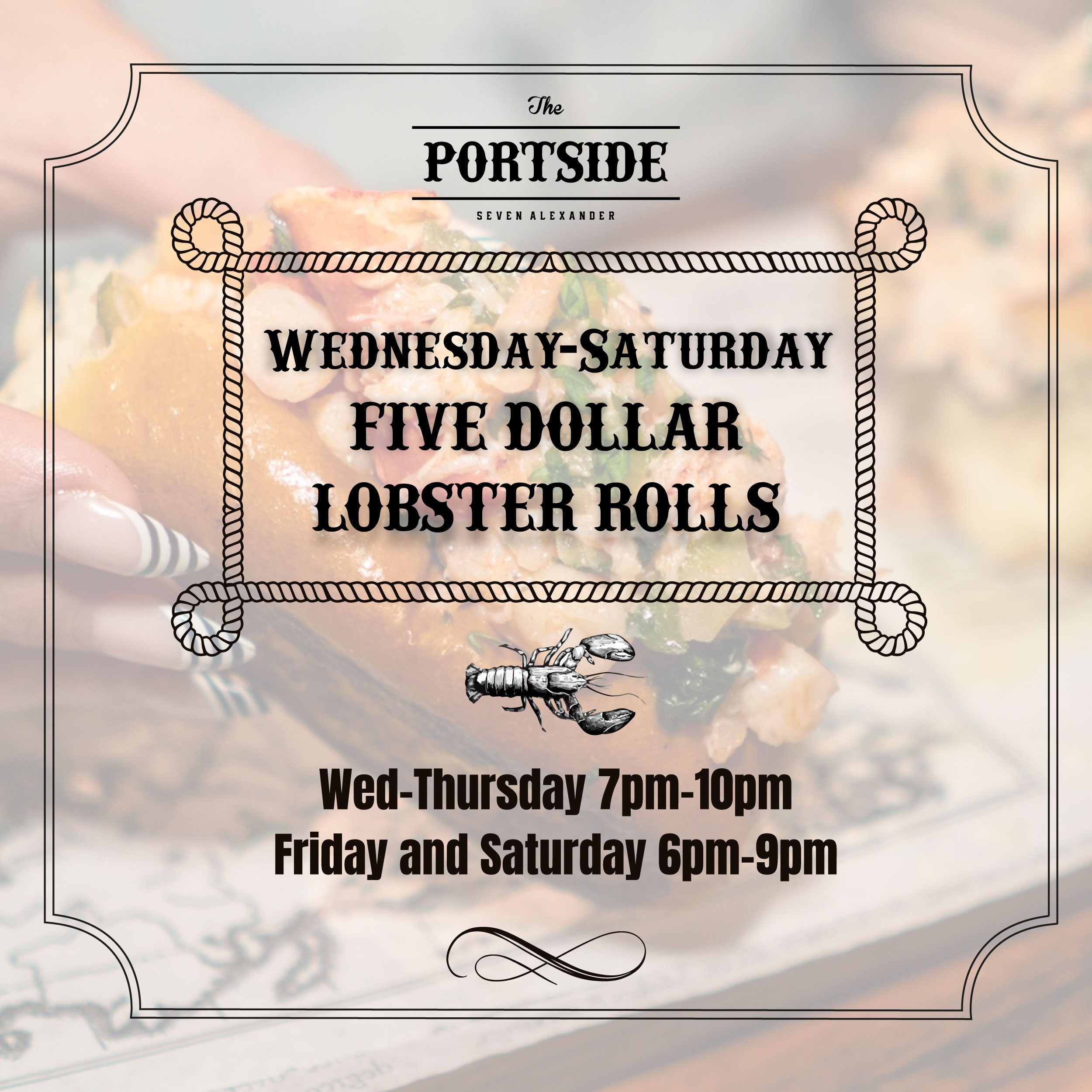 Join us below deck every Wednesday-Saturday for $5 Lobster Roll Happy Hour!