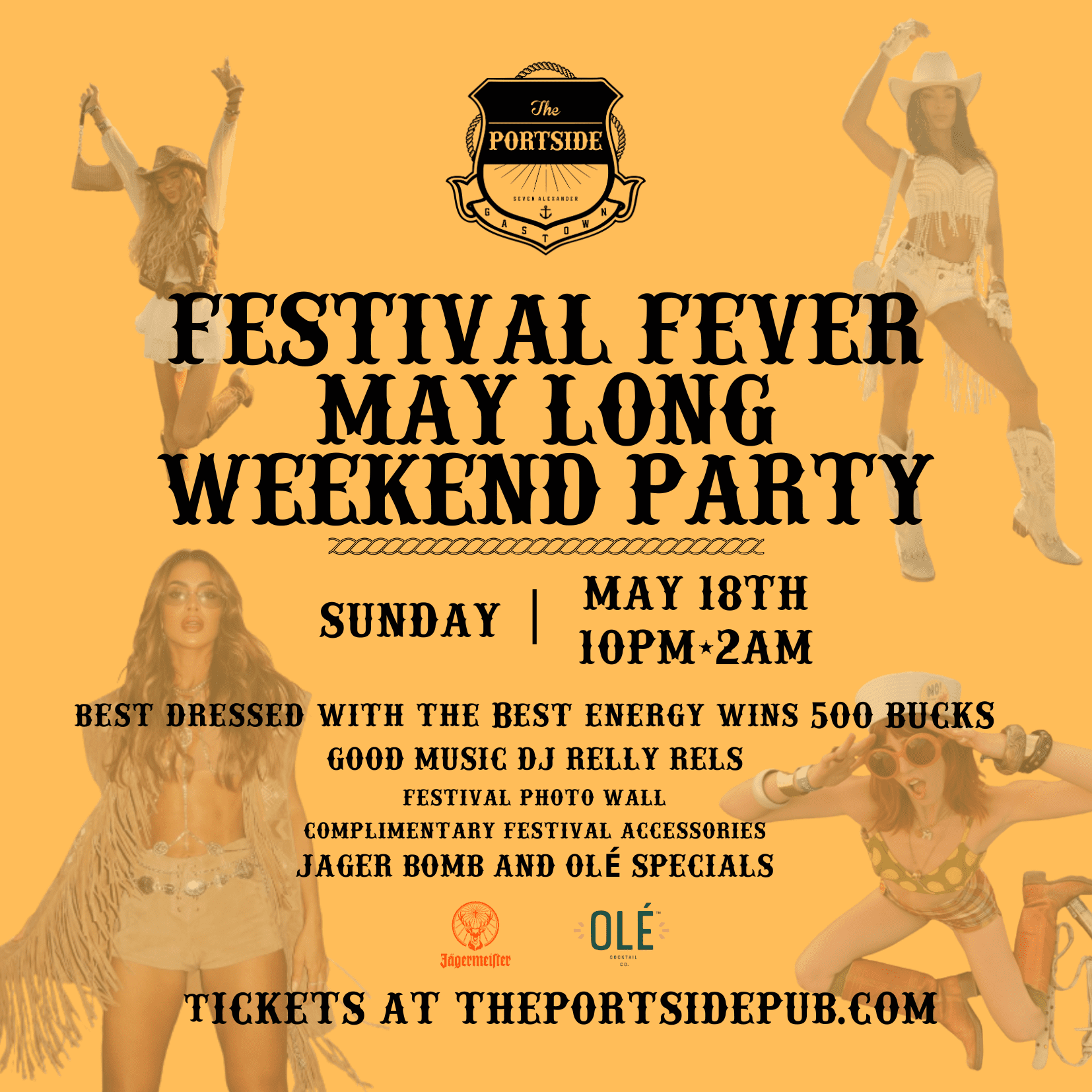 Sunday, May 18th, The Portside is transforming into a full-on festival fantasy for the long weekend. Get ready to dance, vibe, and celebrate freedom with Festival Fever, the ultimate pre-summer party for the wild ones.